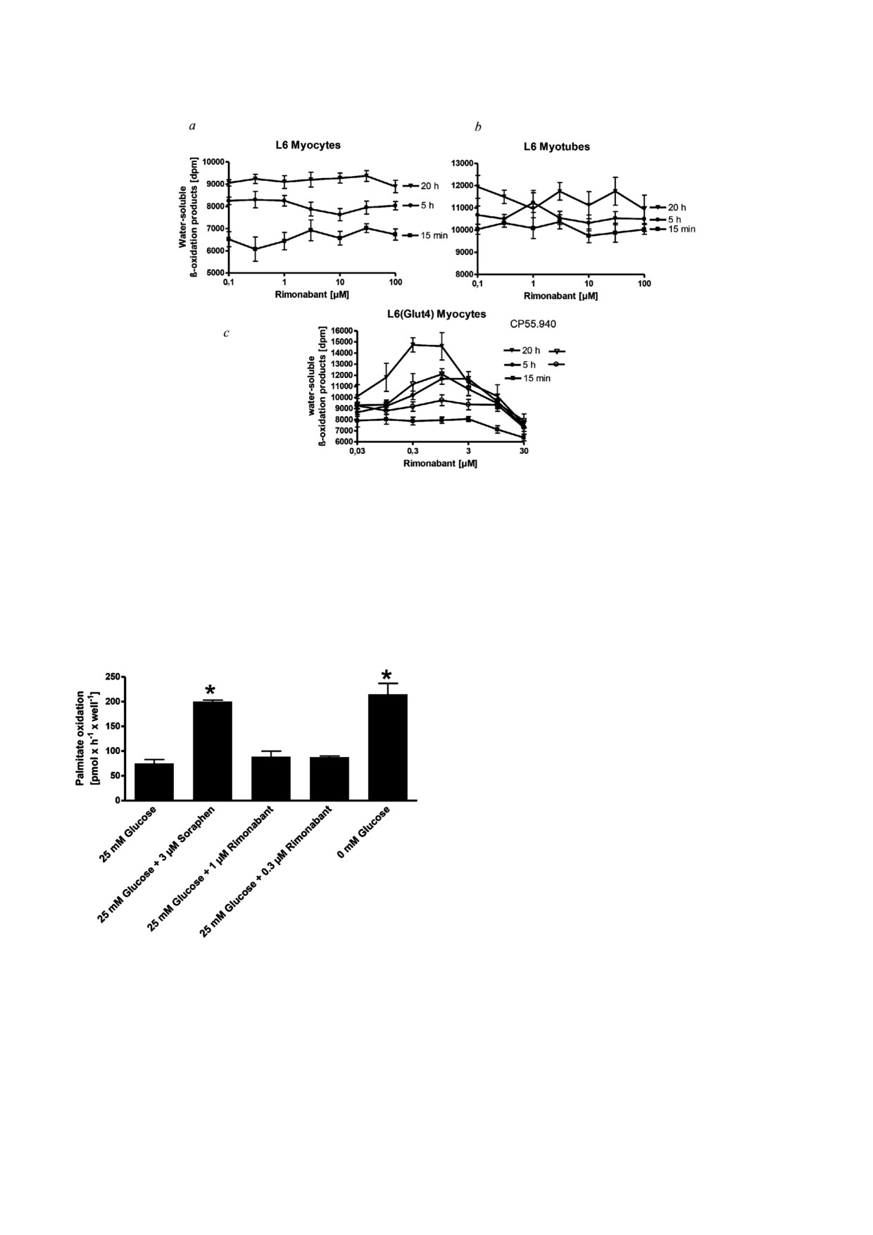 term action of rimonabant failed to stimulate β!oxidation in myocytes, myotubes, and hepatocytes, as well as to
