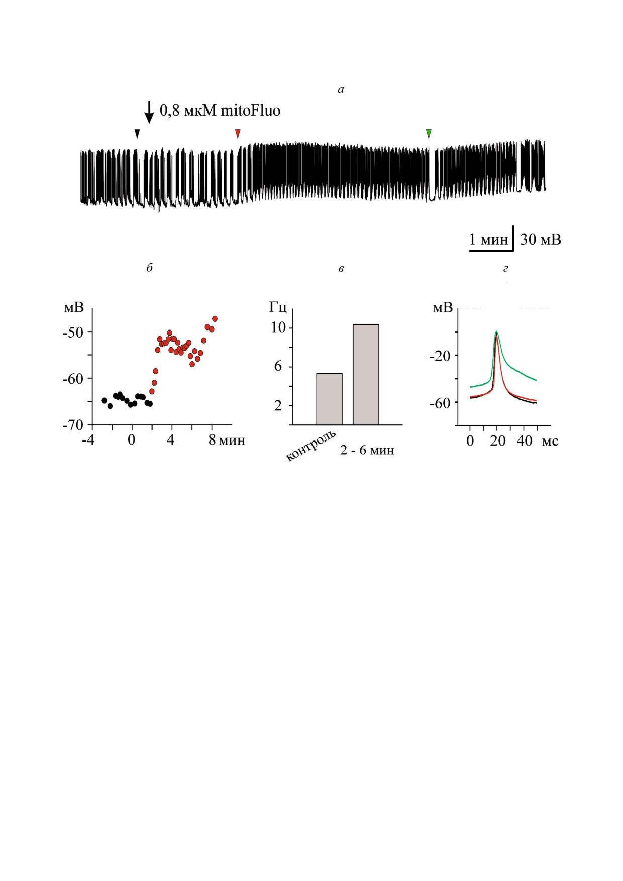 гается, что действие mitoFluo на электрическую активность нейронов, как митохондриального разобщи!
