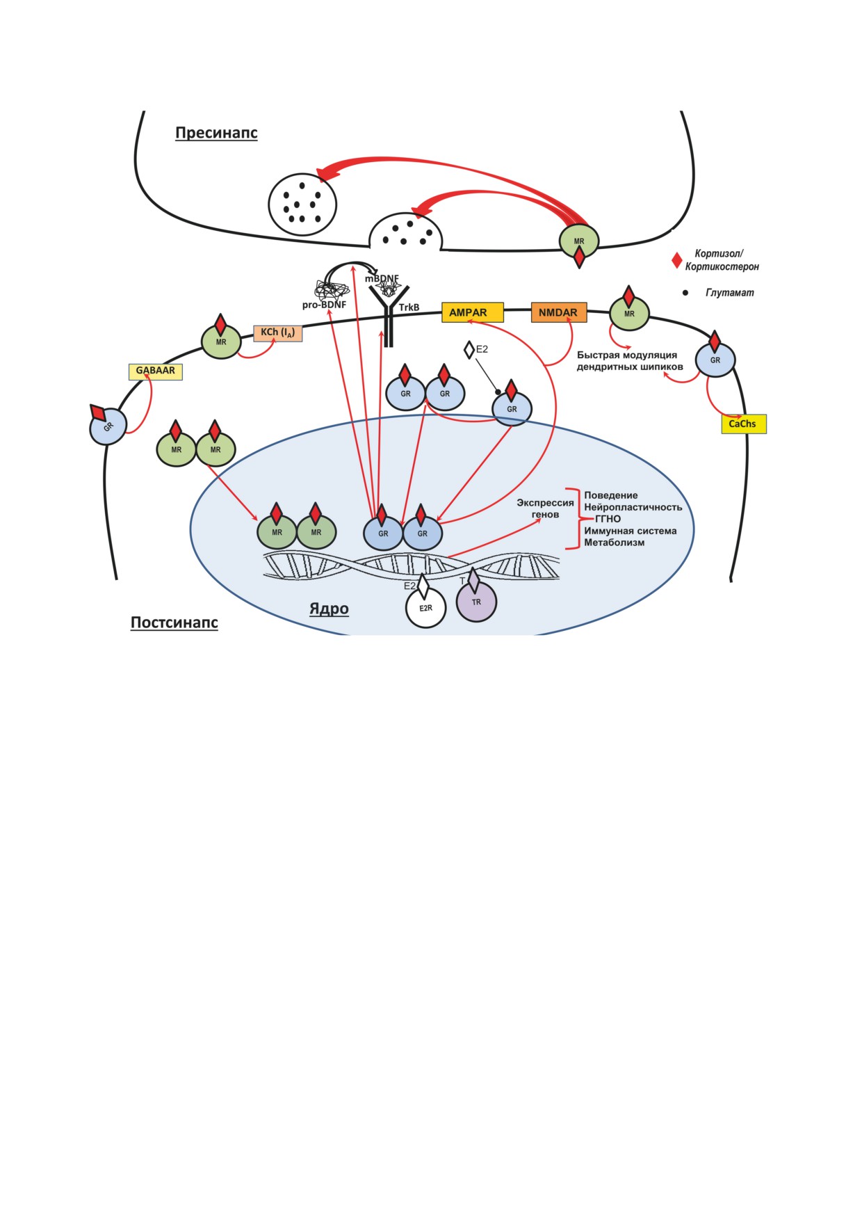 Принятые сокращения: ACTH - адренокортикотропный гормон; AMPAR - рецепторы α-амино-3-гидрокси-