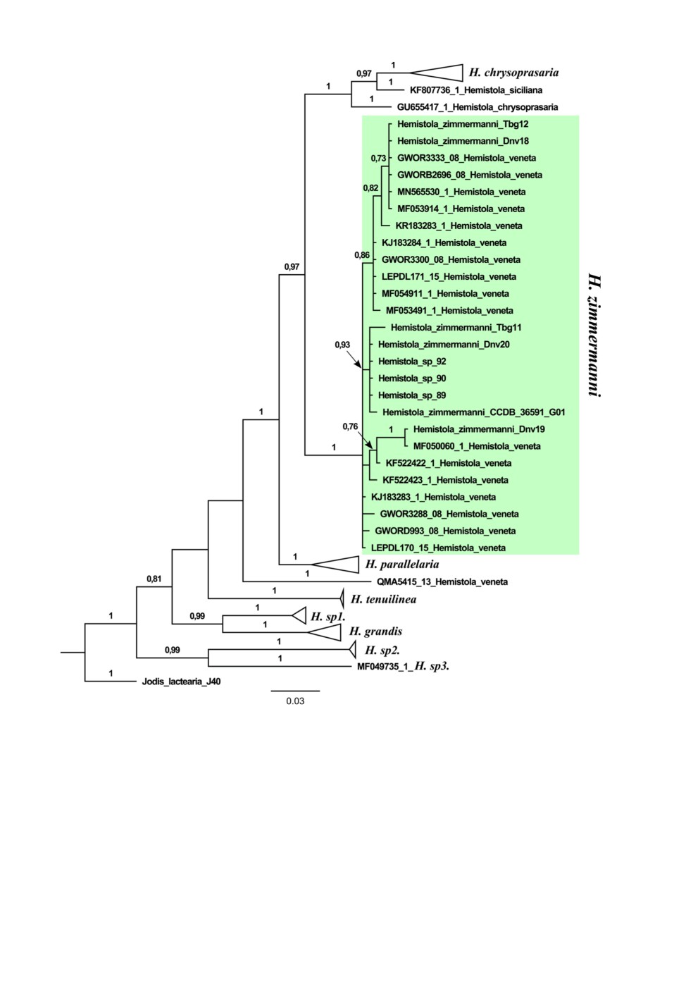 I. kaszabi Vojnits, 1974, Chlorissa viridata (Linnaeus, 1758) and Ch. obliterata are unambiguously