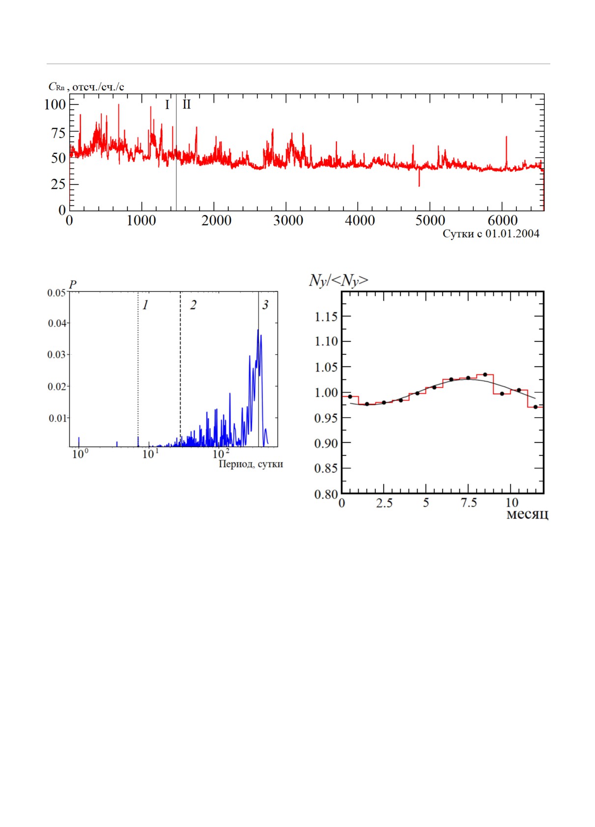 рии, показал наличие суточной, недельной, лунно-месячной и годовой модуляций. В работе приводятся