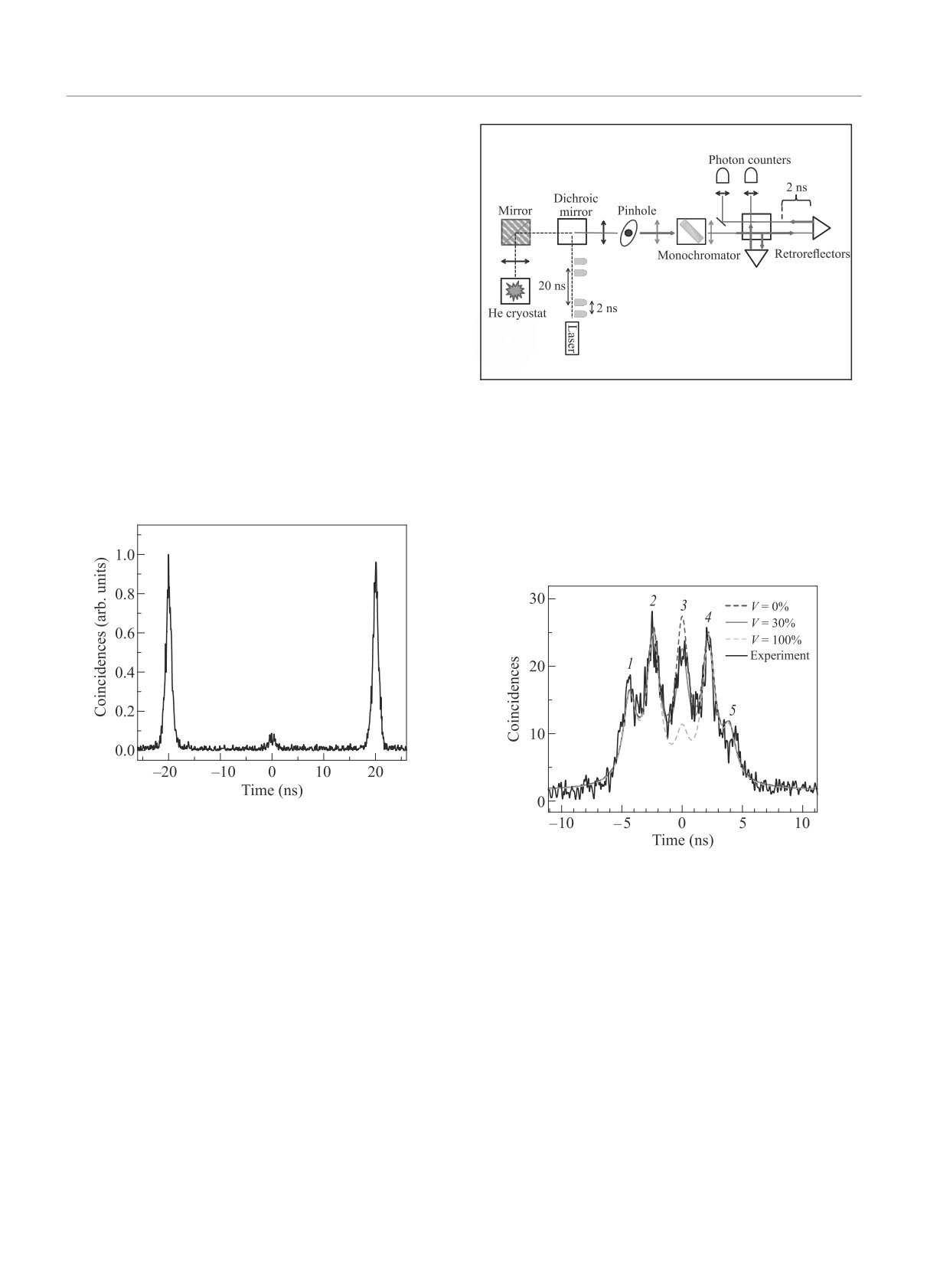 g(2)(0) = 0.08. Степень неразличимости последовательно излученных фотонов, измеренная в интерфе-