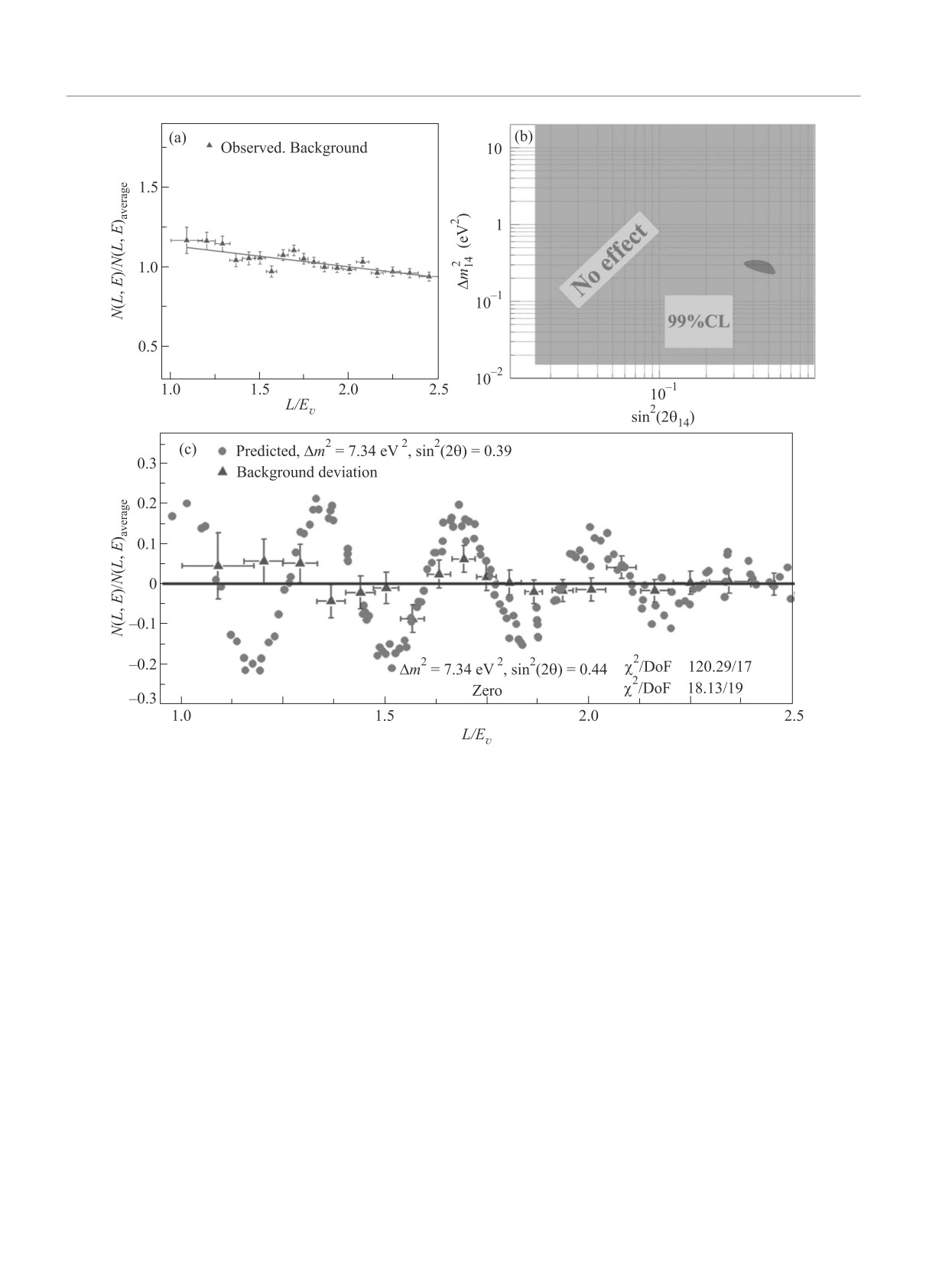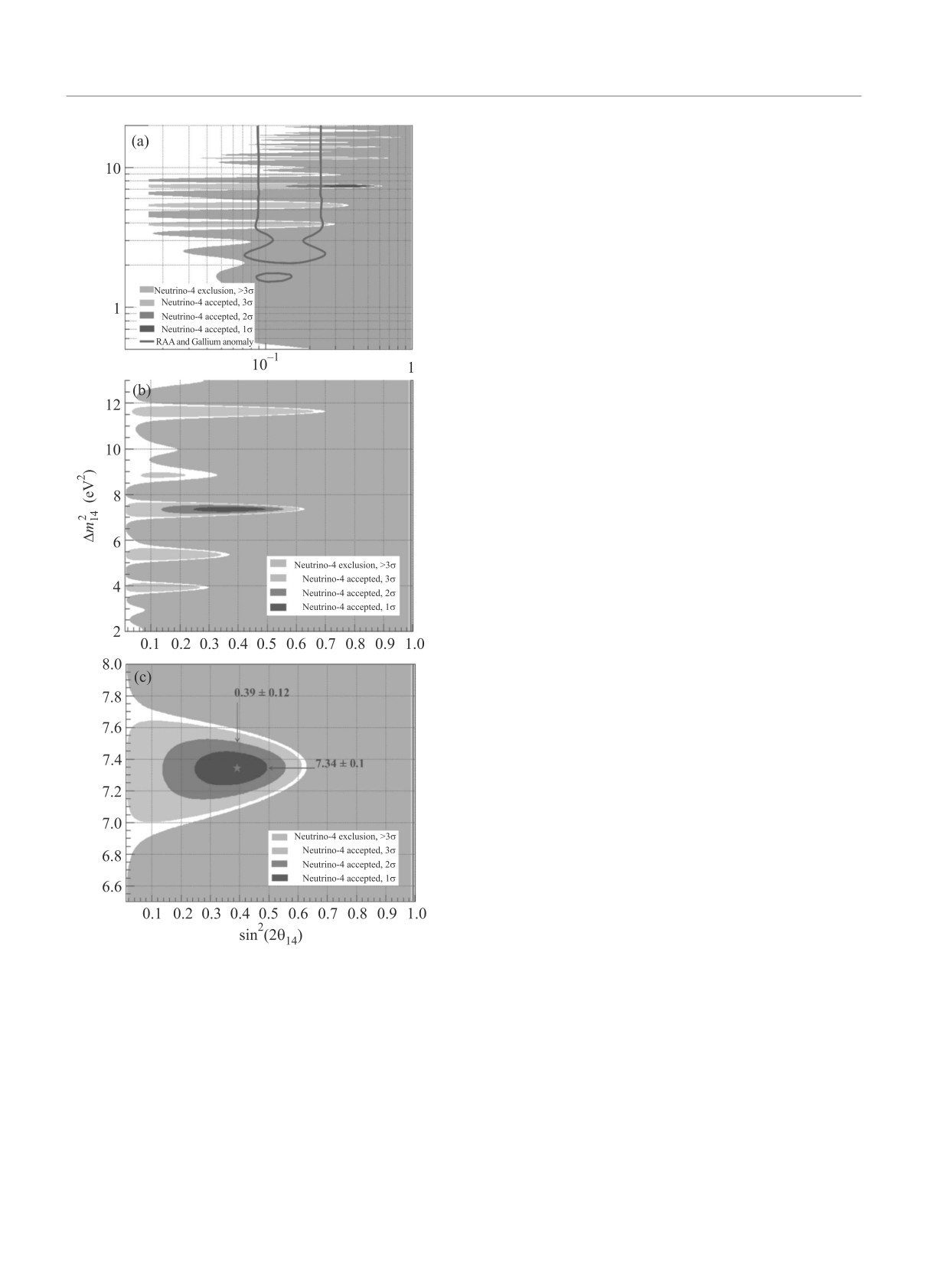 чений Δm214 ≈ 7.3 эВ2, sin2 2θ14 ≈ 0.39 наблюдается эффект осцилляций на уровне достоверности 2.8σ.