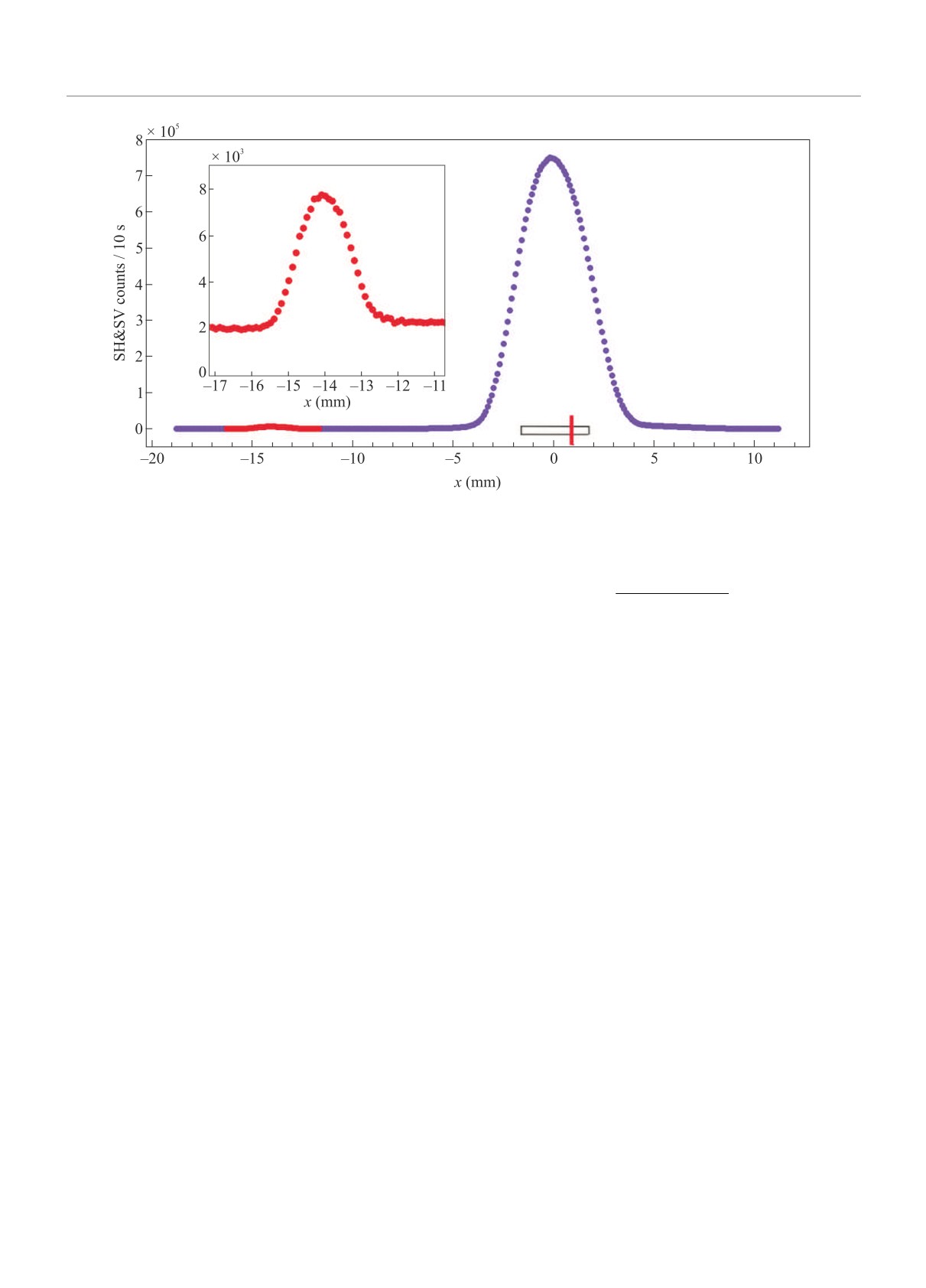 Рис. 4. (Цветной онлайн) Линейный X-скан прямого и каналированного пучков. Снизу пика прямого пучка показано