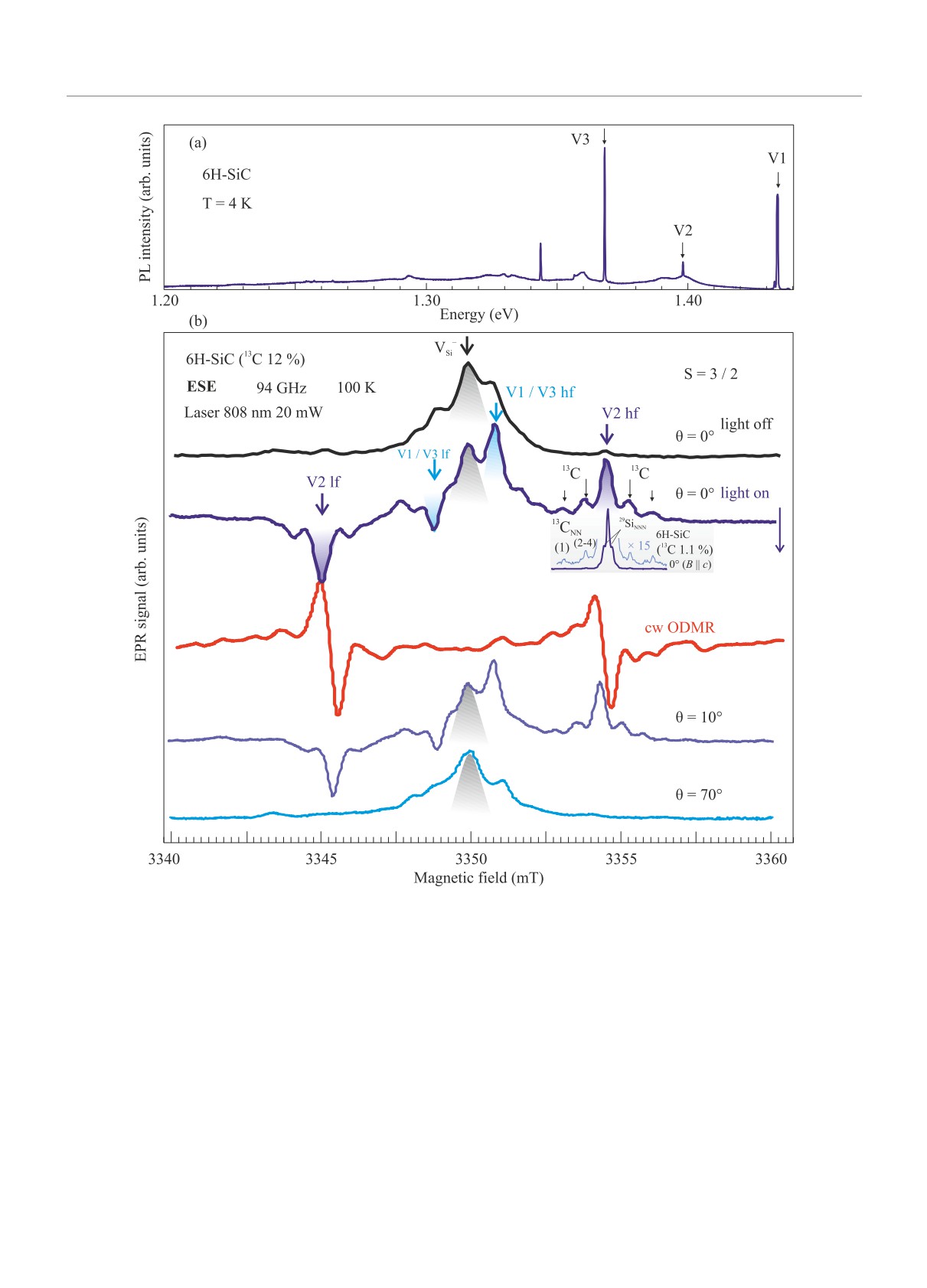 S = 3/2 в подобном кристалле 6H-SiC (12% 13С). Эти