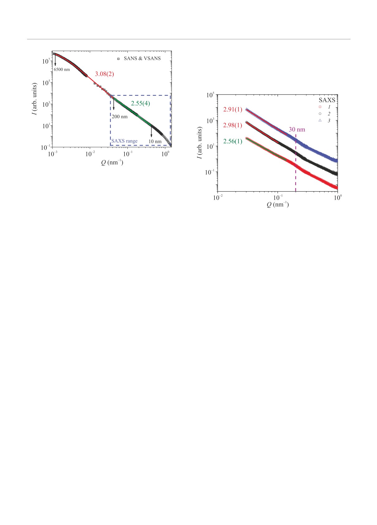 до нескольких сотен нанометров наблюдается структура логарифмического фрактала, а на меньших