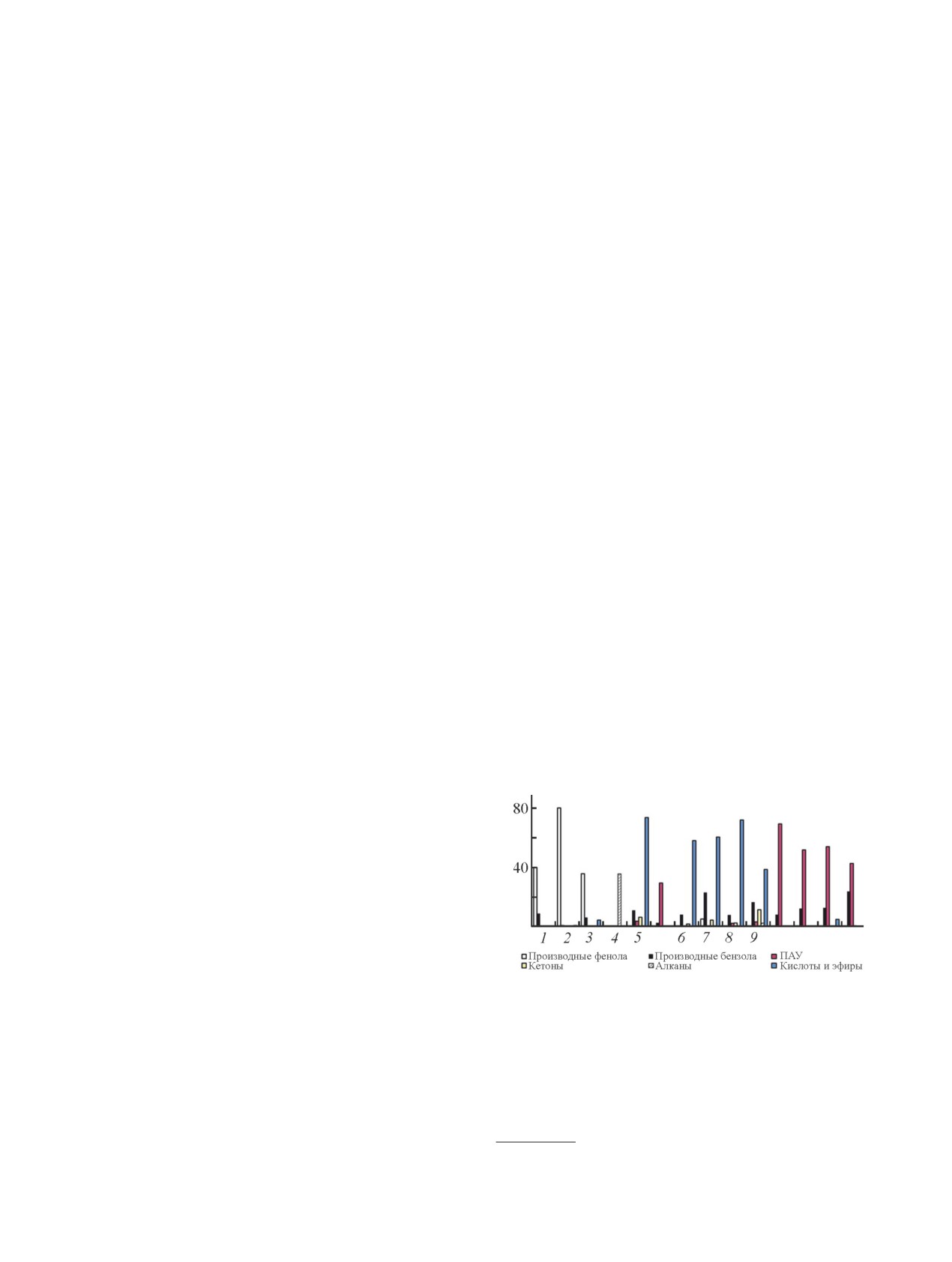 фракции, пиролизном масле и полукоксе кислородсодержащих соединений. Показано влияние добавок
