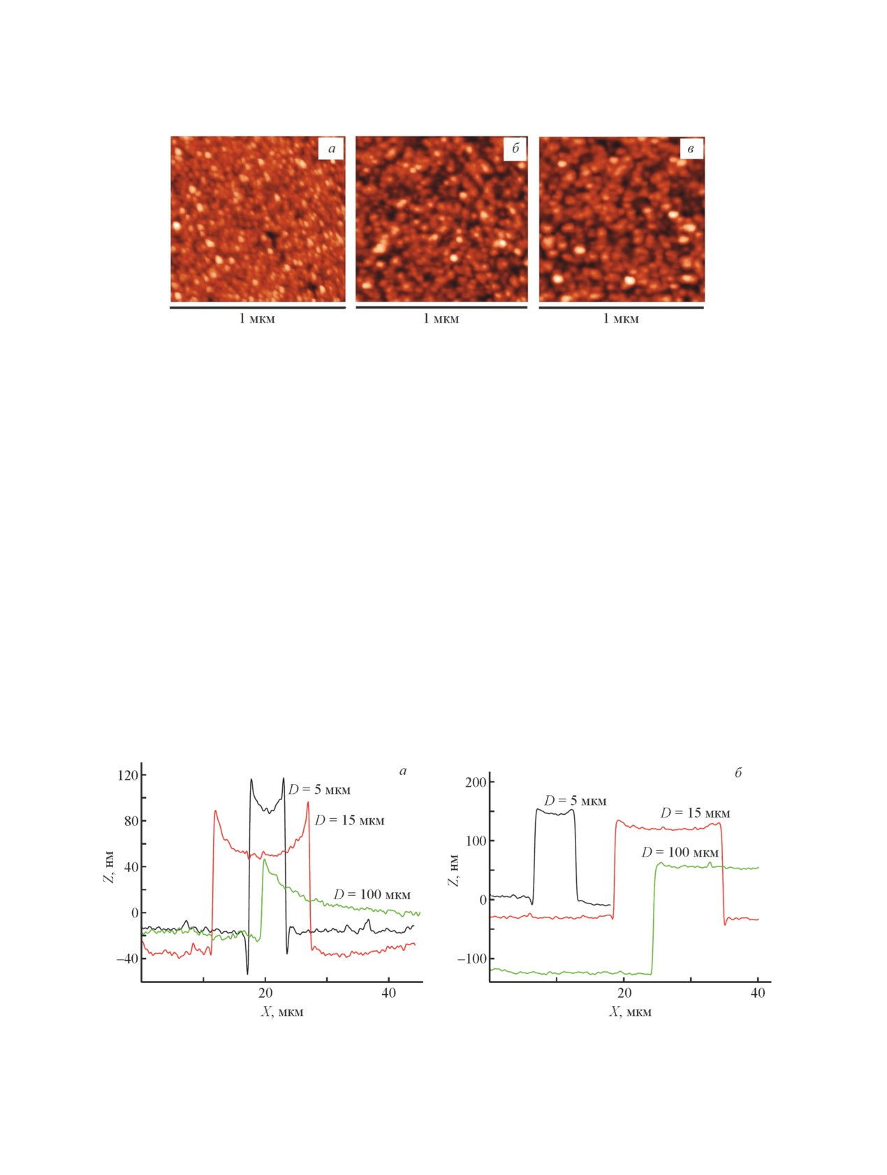 тура и профили распределения осадка иридия в контактах с различным диаметром. Структура осадка