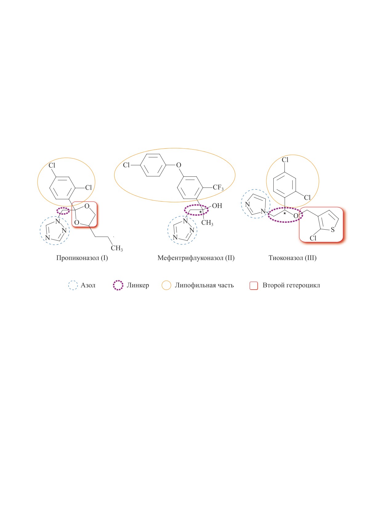 назол (II), тиоконазол (III) [4, 5].