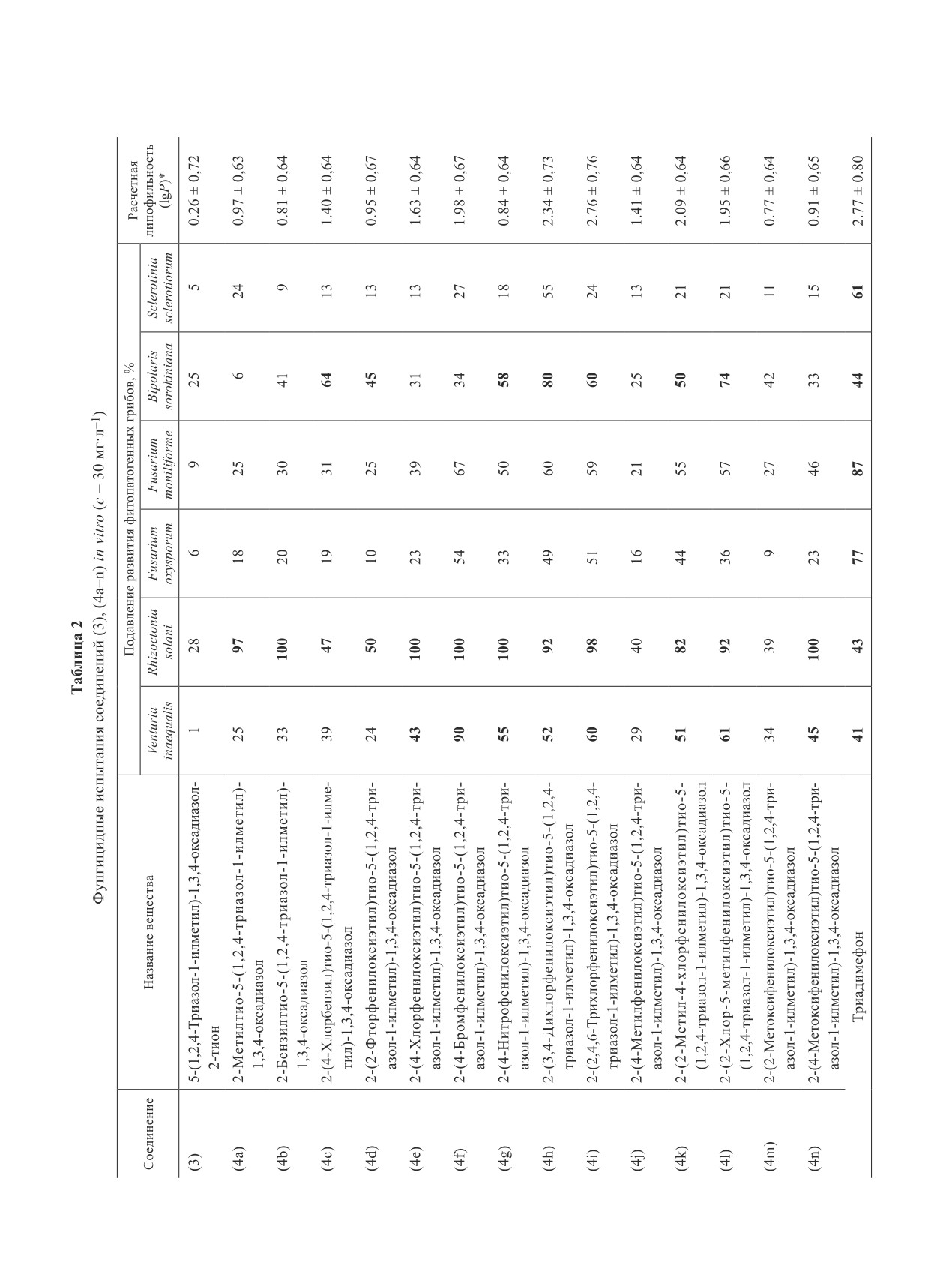 фунгицидной активности новых соединений.
