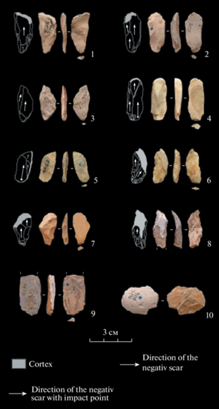 Эта технология продолжала развиваться в нижней части формации Каптурин в Кении возрастом 545–509 тыс. л.н. в эпоху перехода к среднекаменному веку в Африке. В эпоху верхнего палеолита эта технология получила широкое распространение и на территории России. Авторы работы [2] считают, что призматическое расщепление спорадически появлялось и исчезало в Африке. Поэтому они приходят к выводу, что гоминиды при необходимости были способны заново изобрести пластинчатую технологию. Приведу фотографию 1 пластинчатых сколов Томас Гворри 1 из этой статьи.
