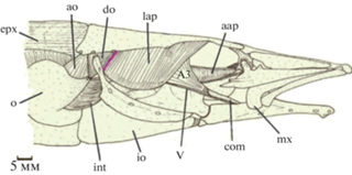 Абдукторный комплекс суспензориума рыбы включает в себя три слабодифференцированных друг от друга мускула: m. levator arcus palatini (LAP), m. dilatator operculi (DO) и m. levator operculi (LO). Волокна LAP, DO и LO берут начало с латеральной поверхности нейрокраниума.