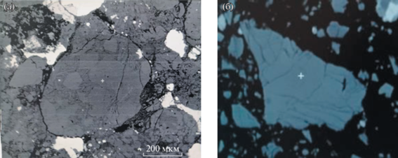 В данной работе исследуется состав газовых компонентов, получаемых при изотермическом выдерживании образцов хондрита Dhajala, тип H3.8, в диапазоне температур от 300 до 800°С. Падение метеорита Dhajala произошло 26 января 1976 г. недалеко от одноименного городка в Индии [5]. Образцы данного метеорита были переданы нам для исследований из коллекции академика Э.М. Галимова, ГЕОХИ РАН. Изучение химического состава основных минералов хондр и матрицы было проведено на электронном зонде CAMECA SX 100. Основные параметры измерений: ток – 10 мА, напряжение 15 кэВ. Анализ показал наличие частично уравновешенных оливинов, пироксенов и плагиоклаза. Также были обнаружены многочисленные зерна камасита, тэнита (FeNi) и троилита (FeS). Мы исследовали вещество хондрита как до нагрева, так и после нагрева при температурах 300 и 700°С. На рис. 1 приведены электронные фотографии BSE образцов. Заметно развитие трещин в минеральных зернах после нагрева.