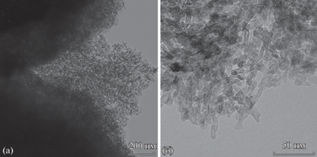 Структуру образцов катализаторов исследовали методом просвечивающей электронной микроскопии высокого разрешения (ПЭМВР) на двухкорректорном просвечивающем электронном микроскопе ThemisZ (Thermo Fisher Scientific, США) c ускоряющим напряжением 200 кВ. Прибор оснащен энергодисперсионным спектрометром рентгеновского характеристического излучения (EDX) SuperX (Thermo Fisher Scientific, США) с полупроводниковым Si-детектором с разрешением по энергии 128 эВ.