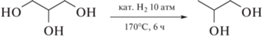 С начала 2000-х гг. активное развитие получило направление, связанное с переходом от ископаемых к биодоступным возобновляемым ресурсам. Национальная лаборатория по возобновляемой энергетике США (NREL – National Renewable Energy Lab.), а также европейская ассоциация RoadToBio, в 2016–2017 гг. представили список промышленно важных продуктов, которые могут быть получены из биомассы [2]. Среди наиболее доступных соединений, получаемых из биосырья, были выделены следующие: янтарная кислота, пара-ксилол, 1,2-пропандиол и глицерин. Глицерин (Gly) представляет собой побочный продукт производства биодизеля. Производство биодизеля основано на реакции переэтерификации растительных жиров (триглицеридов жирных кислот) в соответствующие эфиры жирных кислот (метиловые или этиловые), а в качестве побочного продукта этой реакции образуется глицерин [3]. Глицерин представляет собой простейший трехосновный спирт, который легко вступает в химические реакции, характерные для спиртов. Так, селективная гидродеоксигенация глицерина позволяет получать 1,2-пропандиол в одну стадию в присутствии гетерогенных катализаторов [4].