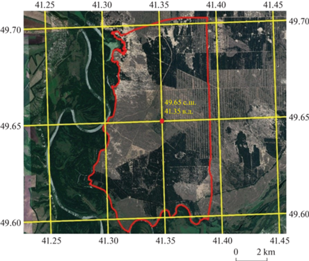Теоретическое исследование проводилось на ключевом участке, который расположен в юго-западной части Казанско-Вешенского песчаного массива. Площадь участка составляет 7093.6 га с координатами центра 49°.65′ с.ш., 41°.35′ в.д. (рис. 2).