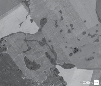 Суффозионный рельеф западной части Горецкой моренной равнины с краевыми ледниковыми образованиями (Оршанский район Витебской области) [22].