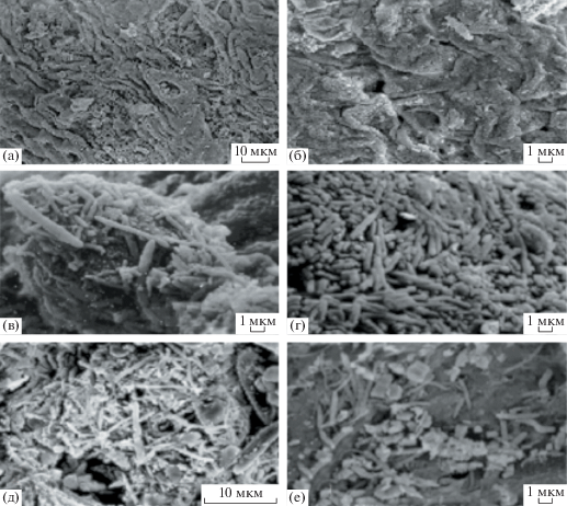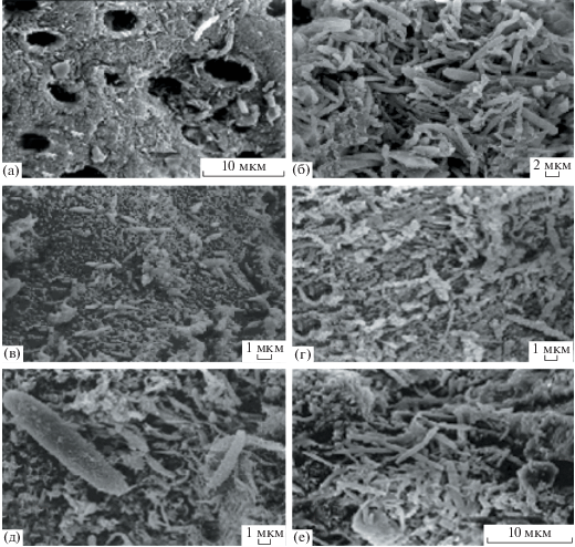 Поверхность эпителия и ассоциированные с ним микробные сообщества. Поверхность ороговевающего эпителия преджелудков песчанок образует складки разного размера, из которых крупные меняют свою конфигурацию благодаря перистальтике и сглаживаются по мере заполнения желудков. Мелкие складки, образованные поверхностными слоями эпителия, присутствуют постоянно и создают мелкий сетчатый рельеф (рис. 1), который может изменяться благодаря постепенному слущиванию поверхностных эпителиальных клеток. Подобная архитектоника поверхности эпителия преджелудка характерна для всех исследованных видов песчанок.