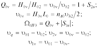 $\begin{gathered} {{\Omega }_{{0{\nu }}}} = {{\left( {n_{F}^{'}} \right)}^{2}} = {{{{{\left( {{{Q}_{{0{\nu }}}} - n_{{{\xi }0}}^{'}} \right)}}^{2}}} \mathord{\left/ {\vphantom {{{{{\left( {{{Q}_{{0{\nu }}}} - n_{{{\xi }0}}^{'}} \right)}}^{2}}} {S_{{2u}}^{2}}}} \right. \kern-0em} {S_{{2u}}^{2}}} = \\ = {{{{{({{\upsilon }_{{2{\nu }}}} - {{n}_{{{\xi }0}}}{{\upsilon }_{{02}}})}}^{2}}} \mathord{\left/ {\vphantom {{{{{({{\upsilon }_{{2{\nu }}}} - {{n}_{{{\xi }0}}}{{\upsilon }_{{02}}})}}^{2}}} {\upsilon _{{2{\nu }}}^{2}}}} \right. \kern-0em} {\upsilon _{{2{\nu }}}^{2}}}. \\ \end{gathered} $Учет зависимости ${{\upsilon }_{{0{\nu }}}}$ от ${{n}_{{A0}}}$ из (12) дает возможность записать (14) в виде