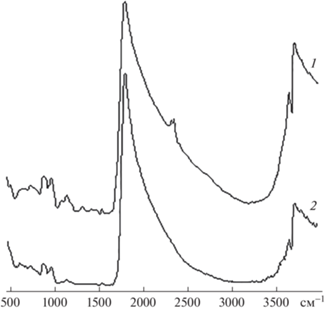 Результаты исследования синтезированных композитов различного состава до и после гидролиза представлены в табл. 1, из которой видно, что с ведением в состав композита ФМУНТ и амина возрастает содержание углерода и азота, а также происходит незначительное изменение содержания кислотных групп. Выход композитов ГК : ФМУНТ : М : А (до гидролиза) и ГК : ФМУНТ : А (после гидролиза) составляет 86.1 и 86.6% соответственно.