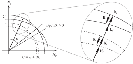 ${{k}_{{||}}} = {{k}_{0}} - \frac{1}{V}{\mathbf{g}} \cdot {{{\mathbf{q}}}_{ \bot }} - \frac{1}{{2k}}{{{\mathbf{q}}}_{ \bot }} \cdot \hat {W}{{{\mathbf{q}}}_{ \bot }},$(2)