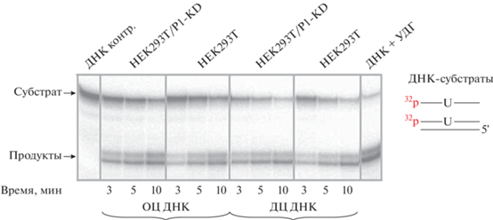 Оценка эффективности стадий BER в экстрактах из клеток HEK293T и HEK293T/P1-KD