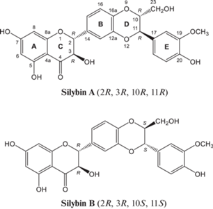 Препараты расторопши пятнистой (Silibum marianum (L.) Gaertner), получаемые на основе силимарина (многокомпонентного стандартизированного сухого экстракта из плодов этого растения) и его главного компонента – флавонолигнана силибина (рис. 1), используются в основном как гепатопротекторы при лечении поражений печени различной этиологии (вирусной, токсической, алкогольной, метаболической) [1–5].