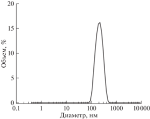 Водные суспензии четырех образцов (SN-08, SN-14, SN-15 и SN-17) имели средний размер частиц ~200 нм, индекс полидисперсности – менее 0.2 (табл. 2). На рис. 3 приведено объемное распределение частиц по размерам в суспензии образца SN-17.