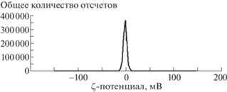 Применение хлорида натрия в качестве инертного наполнителя и криопротектора при получении ПКС было связано с тем, что его присутствие приводит к низкому накоплению электростатического заряда в получаемом лиофилизате. Это важно для его дозирования и быстрой ресуспендируемости в водных средах. Хлорид натрия использовался ранее при получении полимерных композиций, содержащих иные фармацевтические субстанции (доцетаксел, кетопрофен) [30, 31]. ζ-потенциалы частиц полученных образцов ПКС были близки по значению и находились в диапазоне от –1.5 до –4.7 мВ (табл. 2), это обусловлено присутствием электролита (NaCl). На рис. 5 приведено распределение ζ‑потенциала частиц в суспензии образца SN‑17.