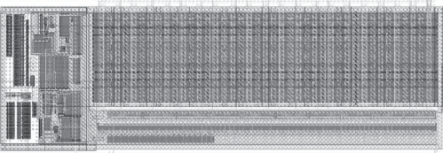 В соответствии с полученной зависимостью был выбран номинал конденсатора, равный 100 пФ, как компромиссный с точки зрения величины джиттера данных и занимаемой площади. На рис. 4 изображена топология разработанного стабилизатора питания. Большую часть площади занимает демпфирующий конденсатор.