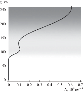 Проблемы с восстановлением эффективной частоты соударений возникают тогда, когда имеет место двуслоевая модель электронной концентрации или присутствуют локальные неоднородности. На рис. 11 показана используемая в расчетах зависимость электронной концентрации от высоты для двуслоевой модели со слоями F и E.