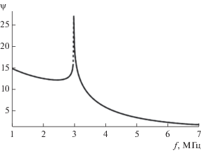 Зависимость поглощения ψ от частоты f представлена на рис. 17. В отличие от однослоевой модели (см. рис. 8), функция имеет экстремум (максимум) в окрестности критической частоты слоя E и не является монотонной.
