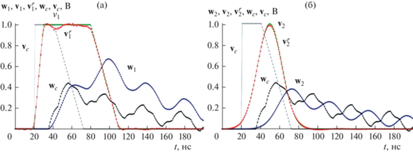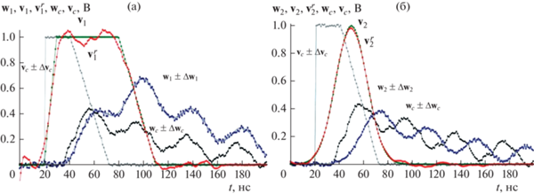 а гауссова импульса ${\mathbf{v}}_{2}^{r}$ (рис. 3б) –