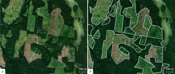 Любые рубки существенно изменяют лесную среду. В наибольшей степени это проявляется при проведении сплошных рубок, когда весь древостой на площади до 50 га вырубается за один прием [1]. Эта форма рубок спелых и перестойных насаждений была и остается наиболее распространенной в России. Зачастую вырубки имеют весьма сложные контуры (рис. 1).