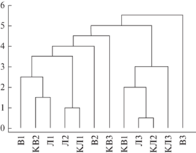 Ранее на основе характеристик напочвенного покрова и подроста экотонного комплекса “ельник черничный–вырубка” нами было показано, что взаимовлияние двух смежных сообществ проявляется на расстоянии примерно 8 м в обе стороны от границы их примыкания [5, 6]. Трансекта, вдоль которой изучались характеристики лесных сообществ, разделялась на условные зоны ЭК с разной протяженностью: лес (Л) – 12–17 м, переходная зона со стороны леса (край леса – КЛ) – 8 м, переходная зона со стороны вырубки (край вырубки – КВ) – 8 м, вырубка (В) – 12–17 м.