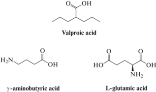 Строение молекулы вальпроевой кислоты, а также нейромедиаторов – гамма-аминомасляной кислоты (ГАМК) и глутаминовой кислоты, с которыми вальпроевая кислота имеет элементы сходства, являясь разветвленной короткоцепочечной жирной кислотой.