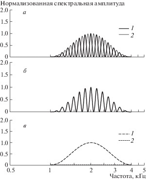 В случае плоского дополнительного сигнала его наложение приводило к уменьшению глубины модуляции спектра тестового и референтного сигналов вдвое по сравнению с “чистым” сигналом (рис. 3).