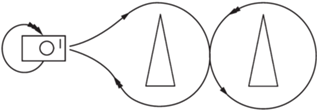 Треугольниками обозначены препятствия, прямоугольник – самоходное шасси, передняя часть которого обозначена штрихом. Оператор, находящийся на самоходном шасси, обозначен кружком.