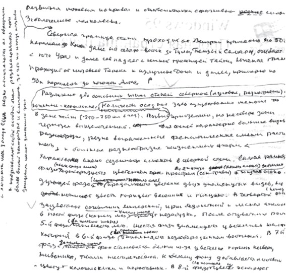 К сожалению, на этом рукопись работы Я.И. Старобогатова, посвященной биомам, заканчивается. Фактически, в ней описаны закономерности распространения жизни на планете, а также основные биомы северной Евразии, находящиеся на территории России. Это для нас имеет самостоятельный интерес.