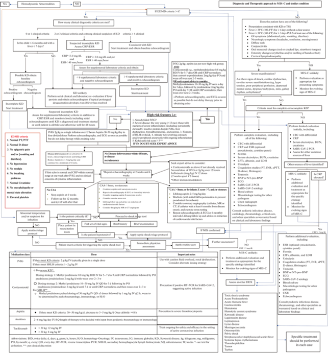 Если показатель EDMD превышает 6 и лихорадка продолжается более 5 дней, следует проверить наличие KD. Если EDMD меньше 6, следует проверить наличие MIS-C и аналогичных состояний (Shulman, 2020).