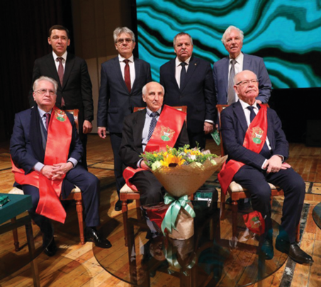 В июне 2022 г. состоялись выборы в РАН и Уральское отделение пополнилось четырьмя академиками, 14 членами-корреспондентами РАН. В завершение выборных мероприятий в Большом зале академии проходила церемония вручения научной Демидовской премии, лауреатами которой на этот раз стали академики РАН Р.И. Илькаев, А.Л. Бучаченко и Ю.Н. Молин, М.Н. Пиотровский (рис. 1).