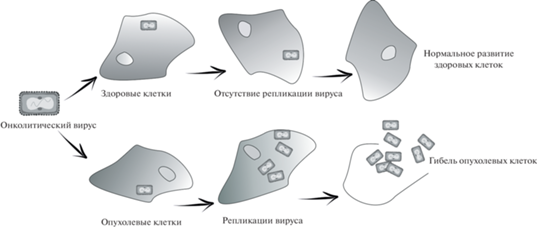 Онколитические вирусы рассматриваются в качестве перспективных агентов для эффективной терапии опухолей, в том числе резистентных к традиционной химиотерапии [1–4]. Приемлемые профили безопасности и хорошая переносимость различных вирусов (аденовирус, вирус осповакцины, реовирус, парвовирус, вирус болезни Ньюкасла, вирус простого герпеса и др.) у пациентов обнадёживают при использовании их в качестве терапевтических препаратов (рис. 1).