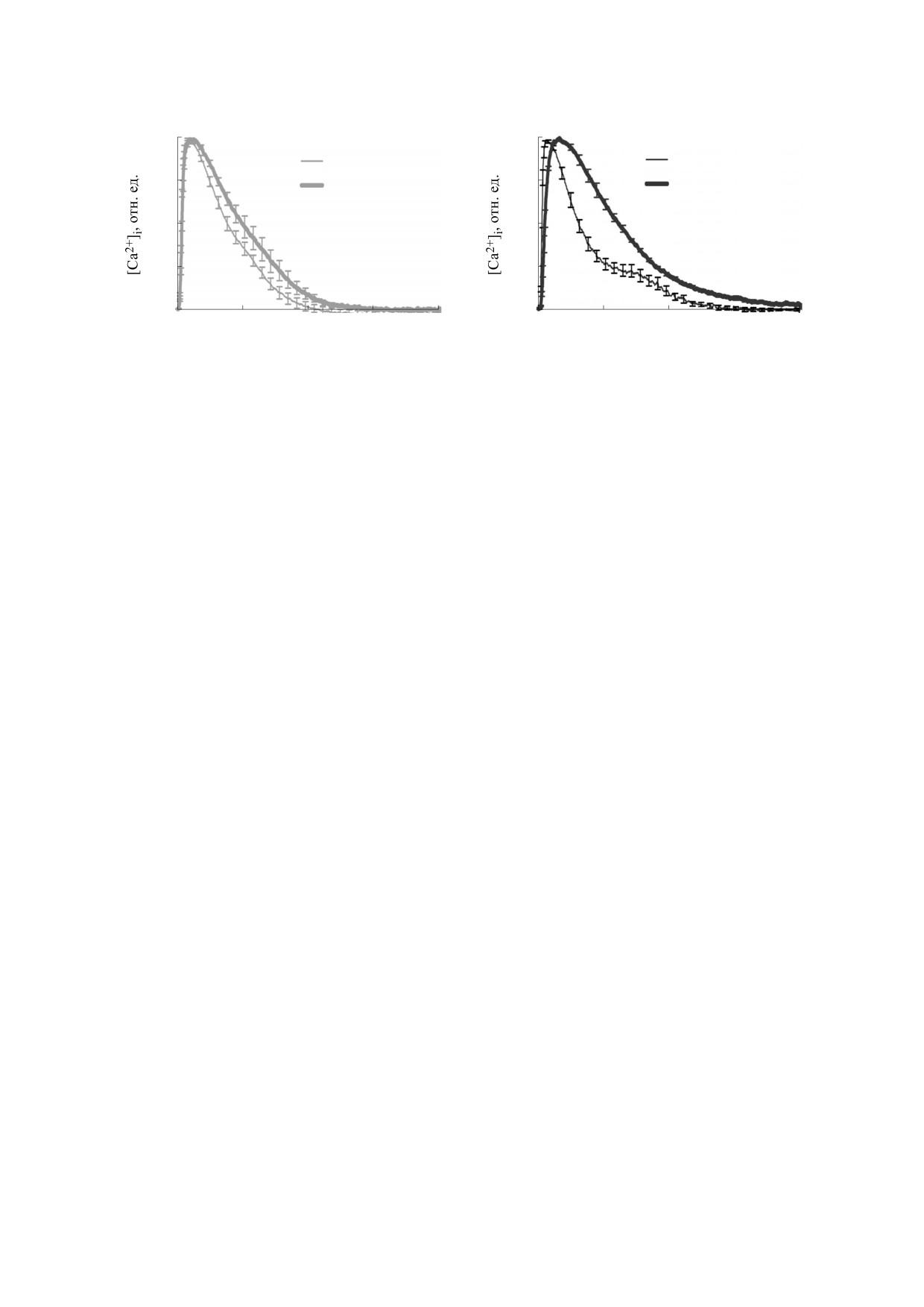 сглаживается фаза кратковременного замедления спада внутриклеточного кальция, отчетливо вы-