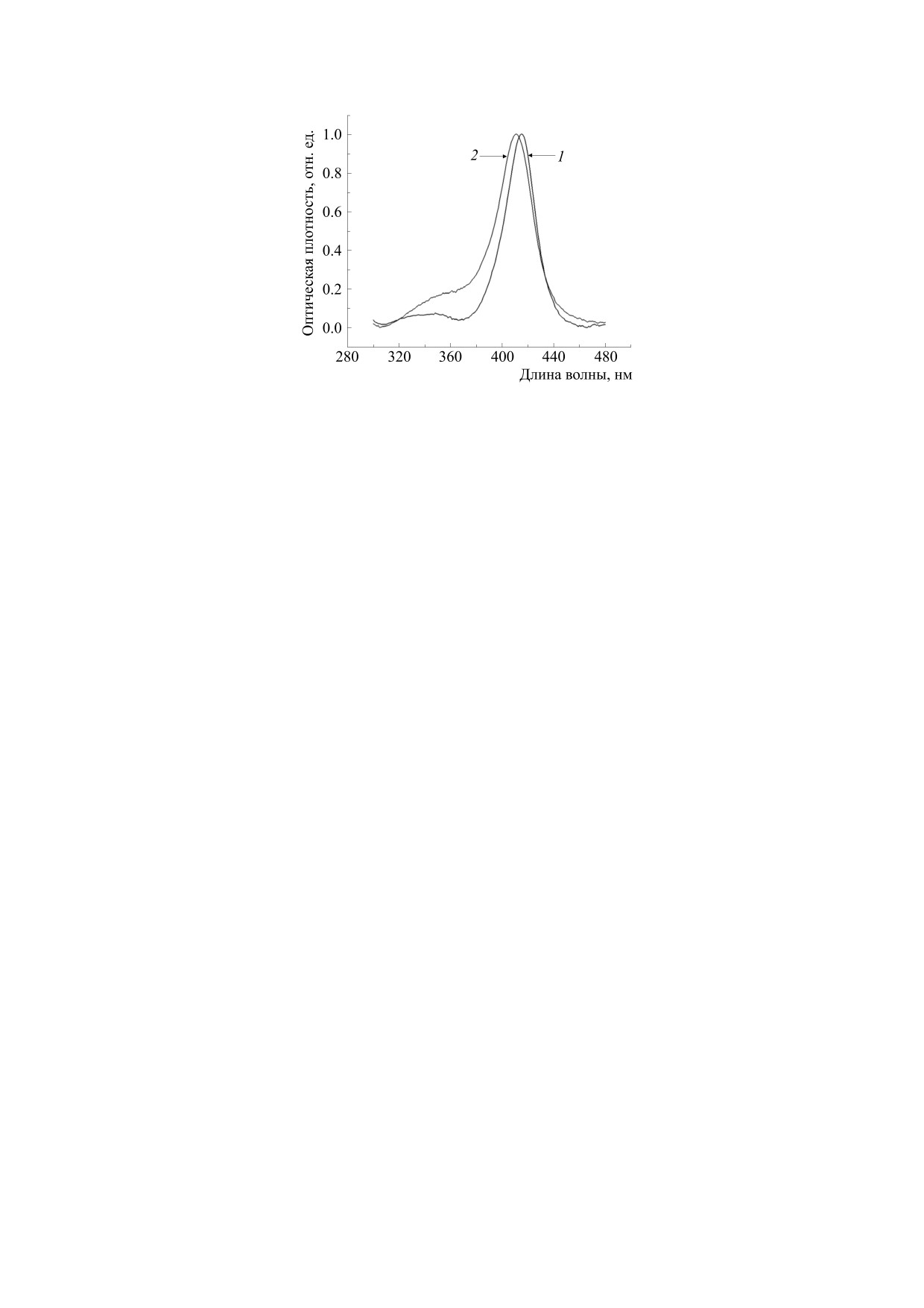 Нормированные спектры полос Соре оксигемоглобина: 1 - спектр исходного HbO2, 2 - спектр HbO2 после добавле-