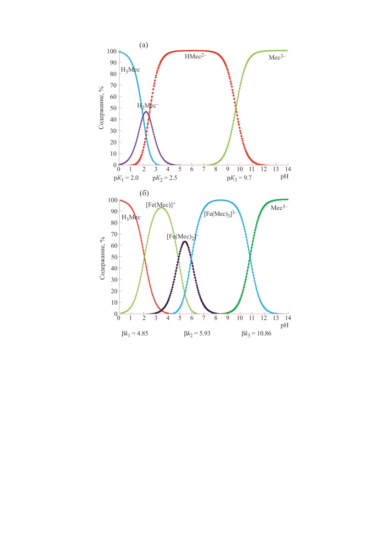 tential, confirmed experimentally. With an increase in the pH of the medium, stepwise binding of meconic