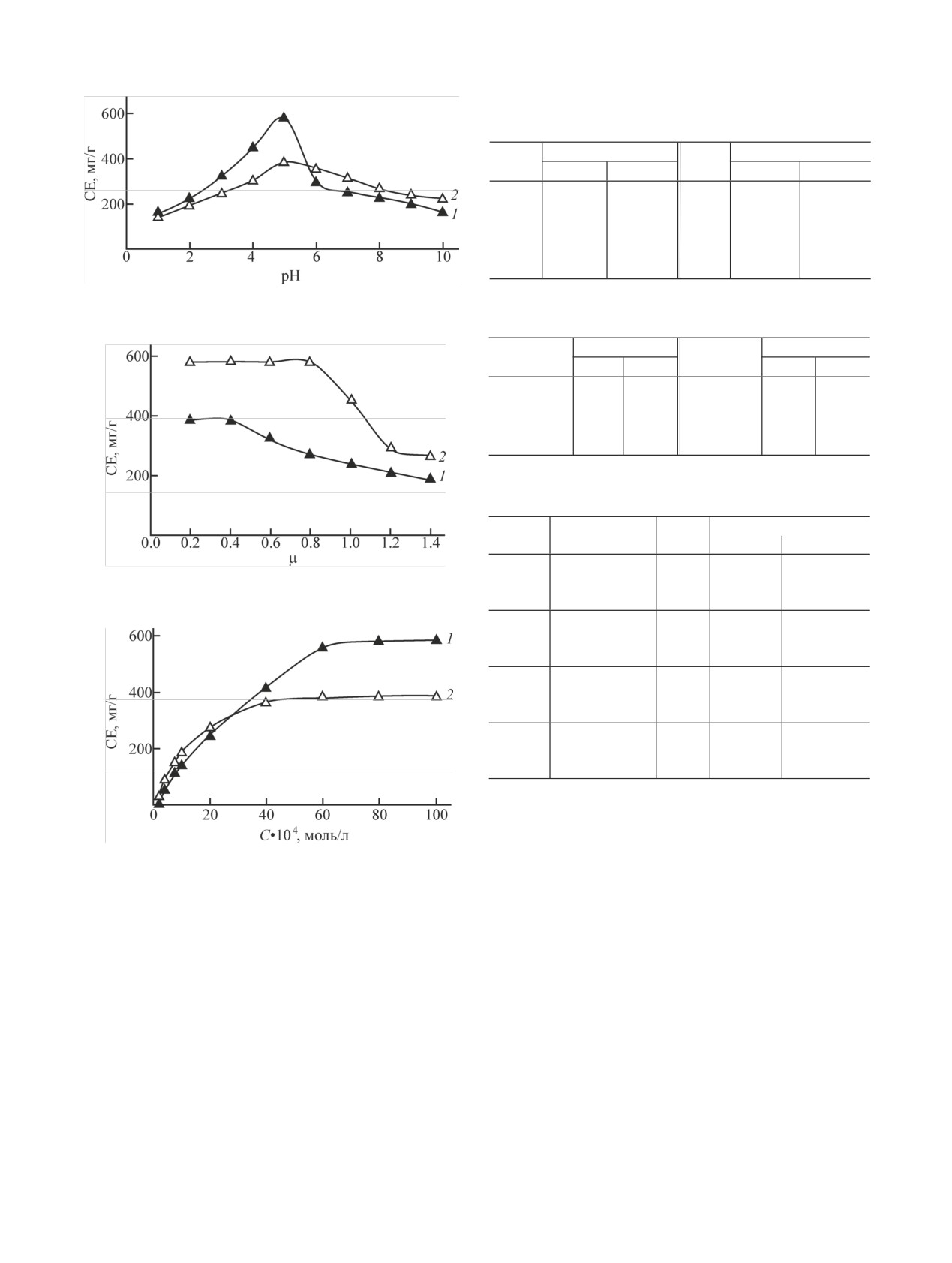 ваны условия сорбции Th(IV) с этими сорбентами. Максимальная сорбция наблюдается при pH 5. Так-