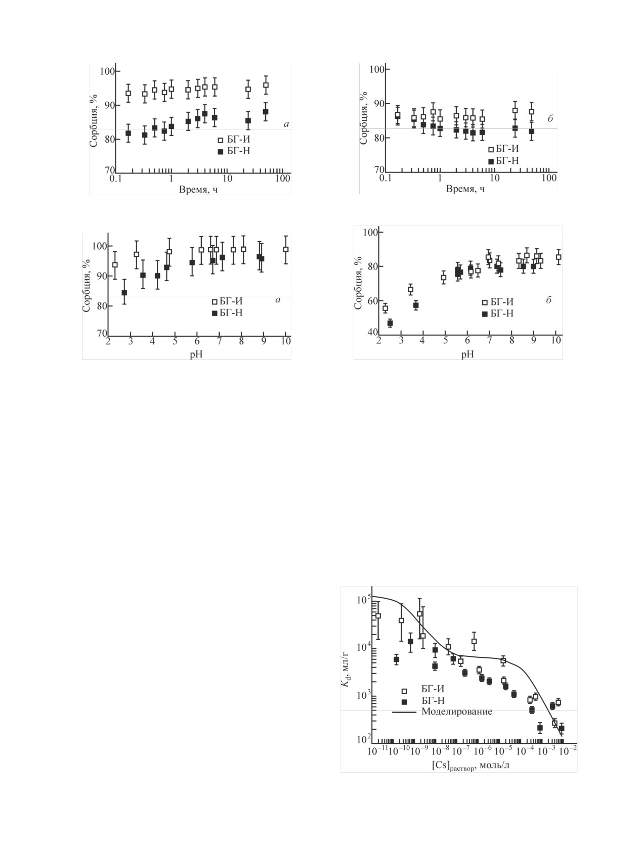 нуклида и значений pH суспензии. Показано, что для обоих радионуклидов сорбционное равновесие