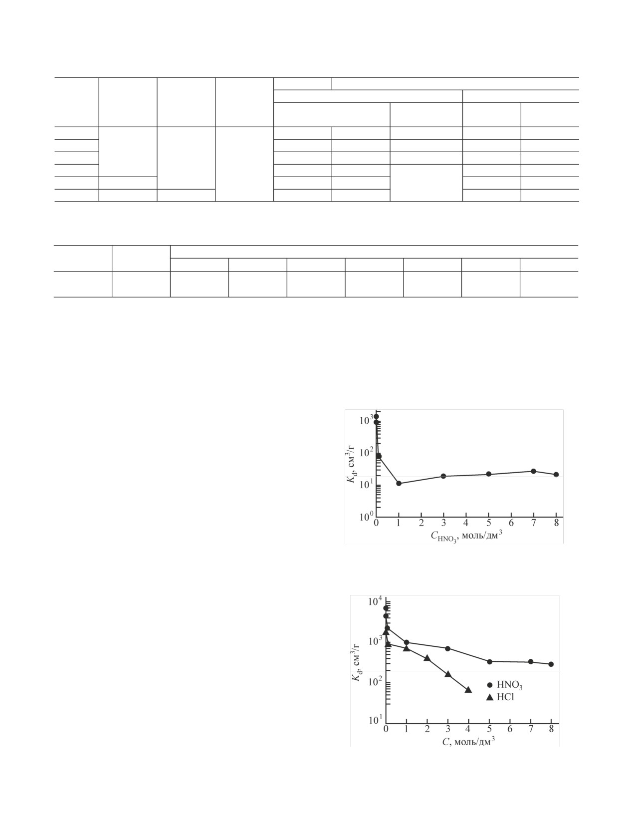 пенью извлечения R > 90% и коэффициентами распределения Kd от 1410 до 706 см3/г соответственно.