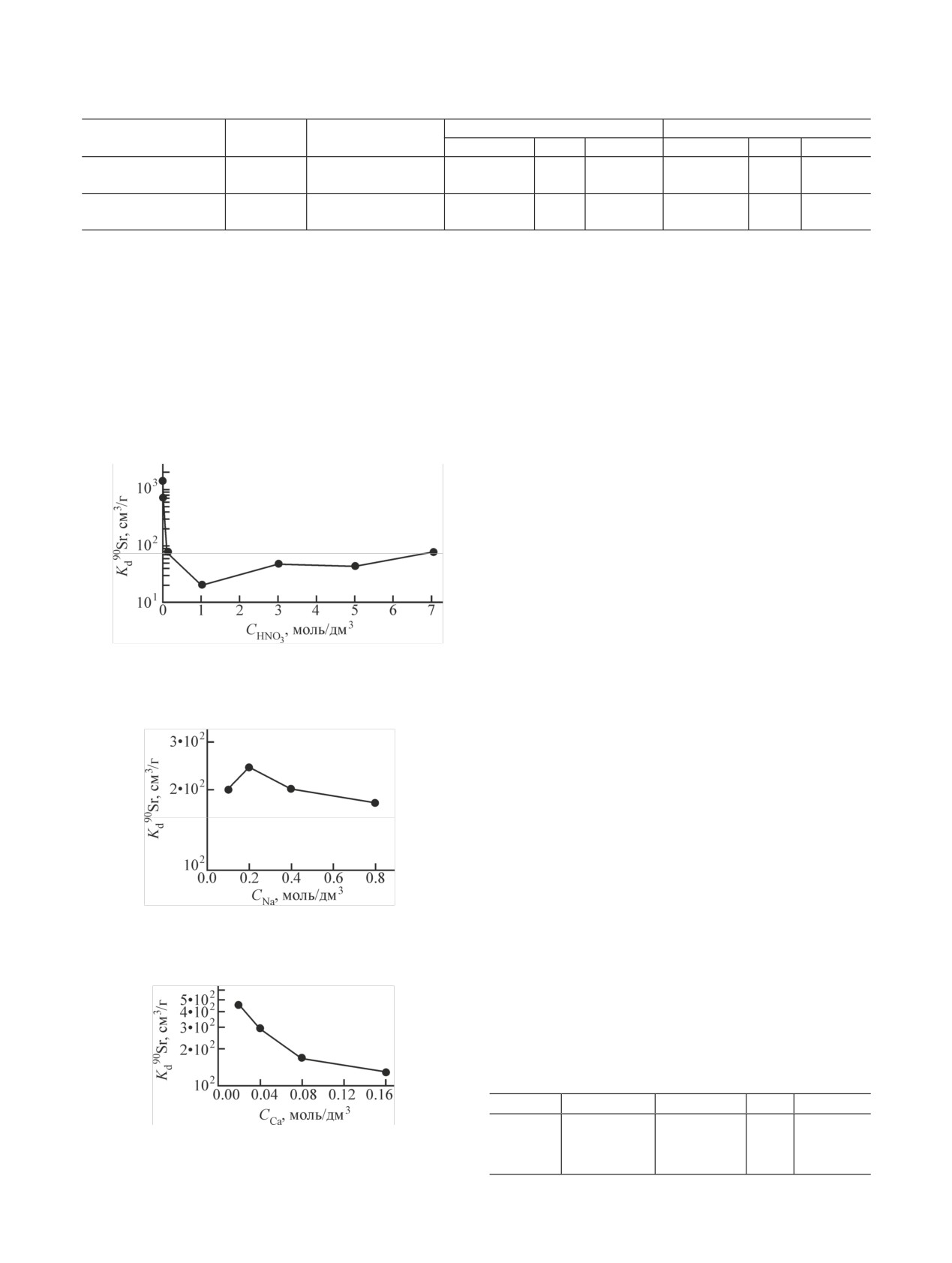 от 0.02 до 0.16 моль/дм3 значение Kd Sr(II) снижается в 4 раза. При сорбционном извлечении 90Sr из
