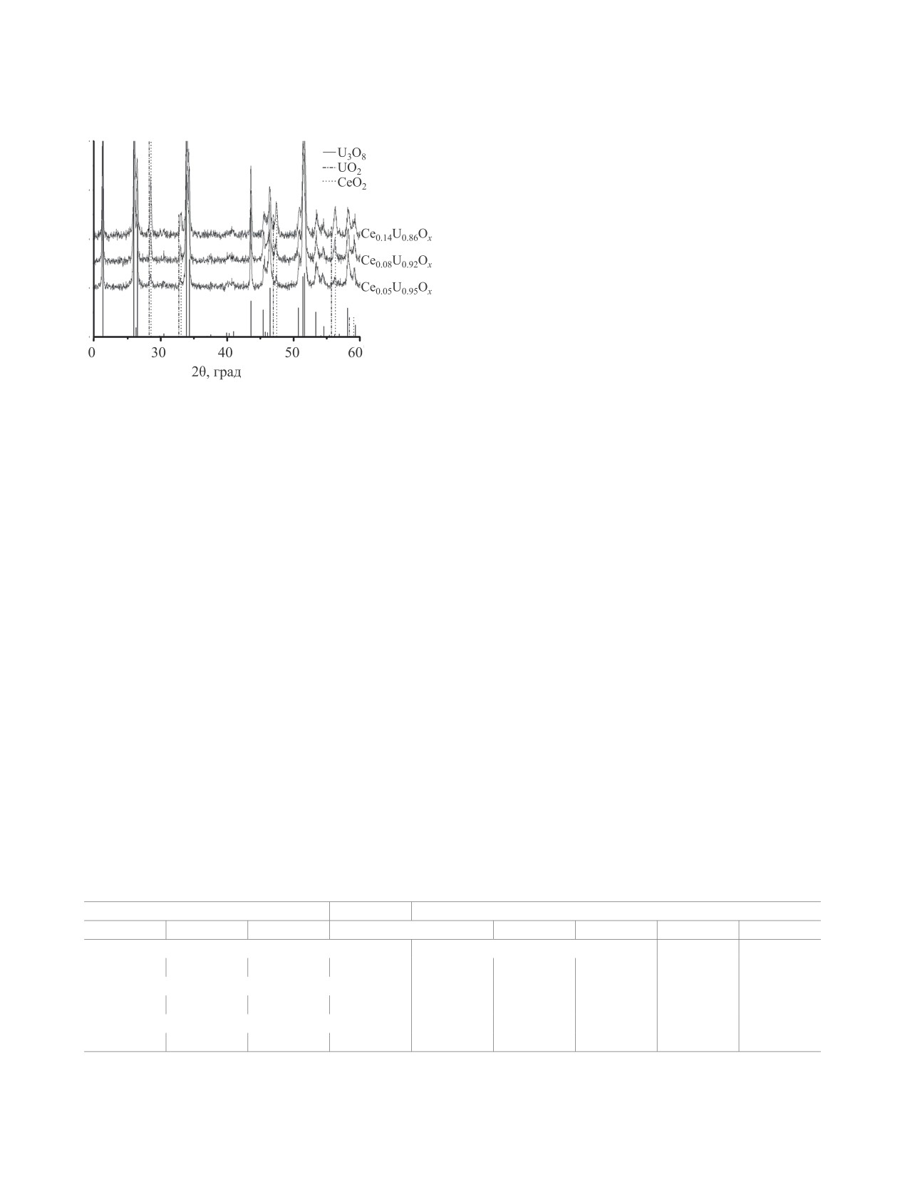 Таблица 1. Состав (U,Ce)Ox и (U,Nd)Ox, синтезирован-